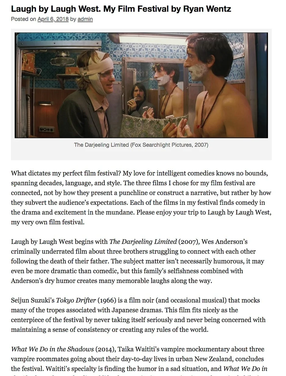 An article published on the Film Matters website highlighting what my own film festival would feature. Really just an excuse to make a bad South by South West pun.